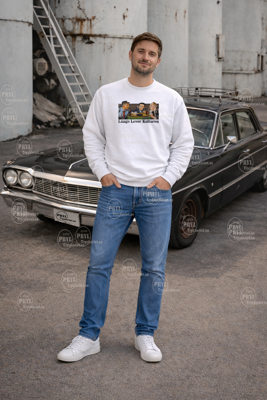 En klassisk prydd med ett ikoniskt motiv inspirerat av Jönssonligan och det kraftfulla budskapet ”Länge lever kulturen” – en hyllning till svensk filmhistoria, humor och kulturarv. Den tidlösa och informella designen gör sweatshirten lätt att matcha med jeans eller chinos och fungerar lika bra för män som kvinnor.